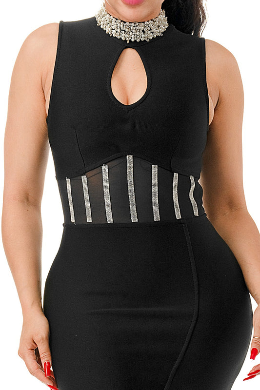Crystal Cutout Bustier Mini Bandage Dress - Beige