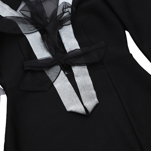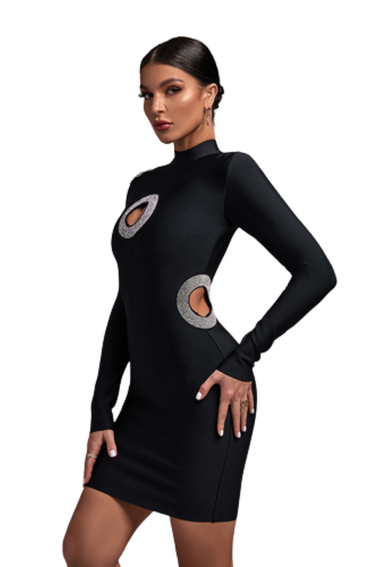 Long Sleeve Cutout Ring Bandage Dress - Black