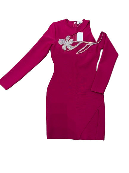 Flower One shoulder Diamonate Mini Bandage Dress